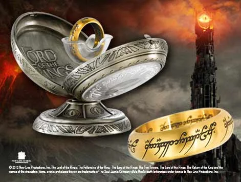 Noble Collection LORD OF THE RINGS – Anneau Unique – Acier Doré – Taille US 10 FR 62.4